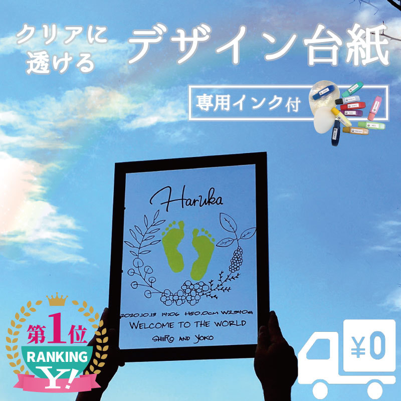 クリア に透ける 台紙 ハピネスリース ■ 手型 足型 【名入れ】 透明 選べる インク 付き ◆ 記念 誕生 手形 足形 アート ポスター 出産 赤ちゃん ベビー