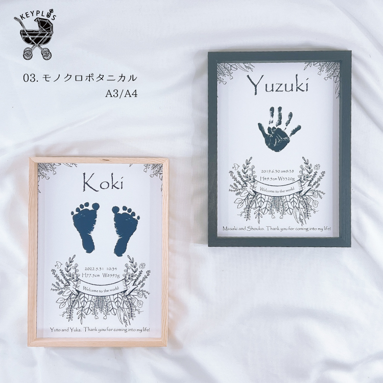 手形 足形 アート 【モノクロボタニカル】 ◆ ポスター スタンプ 誕生 出産 記念 赤ちゃん ベビー手型 足型 命名書 お祝い