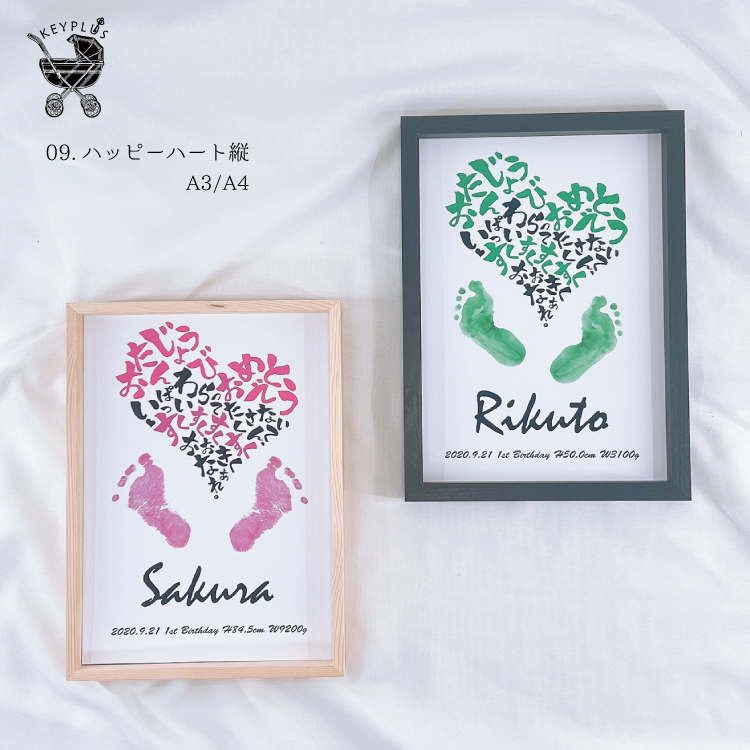 手形 足形 アート 【ハッピーハート縦】 ◆ ポスター スタンプ 誕生 出産 記念 赤ちゃん ベビー手型 足型 命名書 お祝い フレーム インク