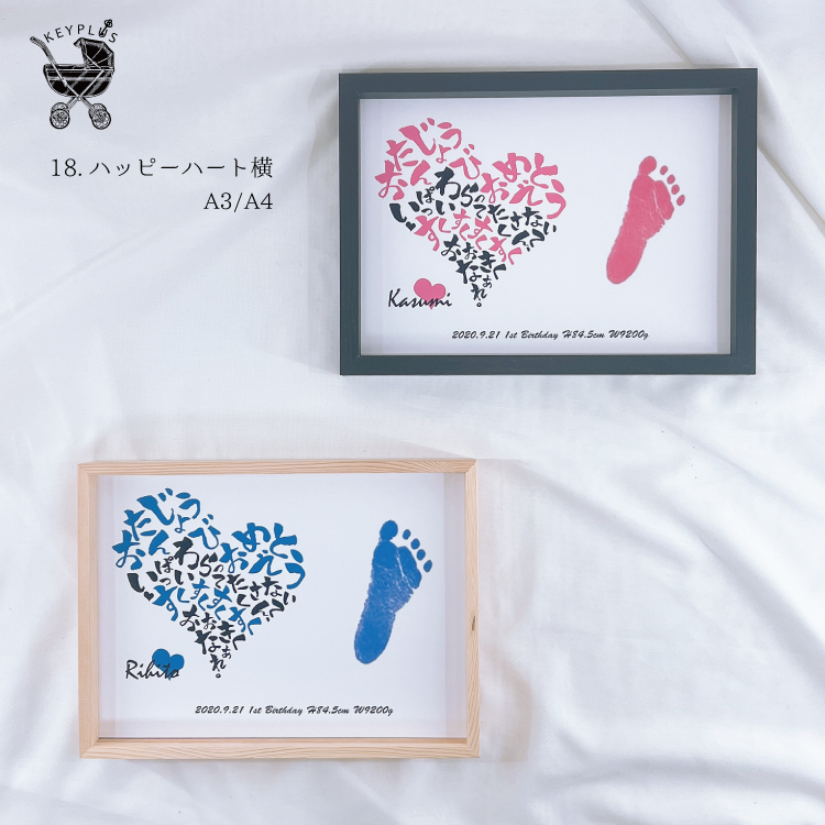 手形 足形 アート 【ハッピーハート横】 ◆ ポスター スタンプ 誕生 出産 記念 赤ちゃん ベビー手型 足型 命名書 お祝い インク フレーム