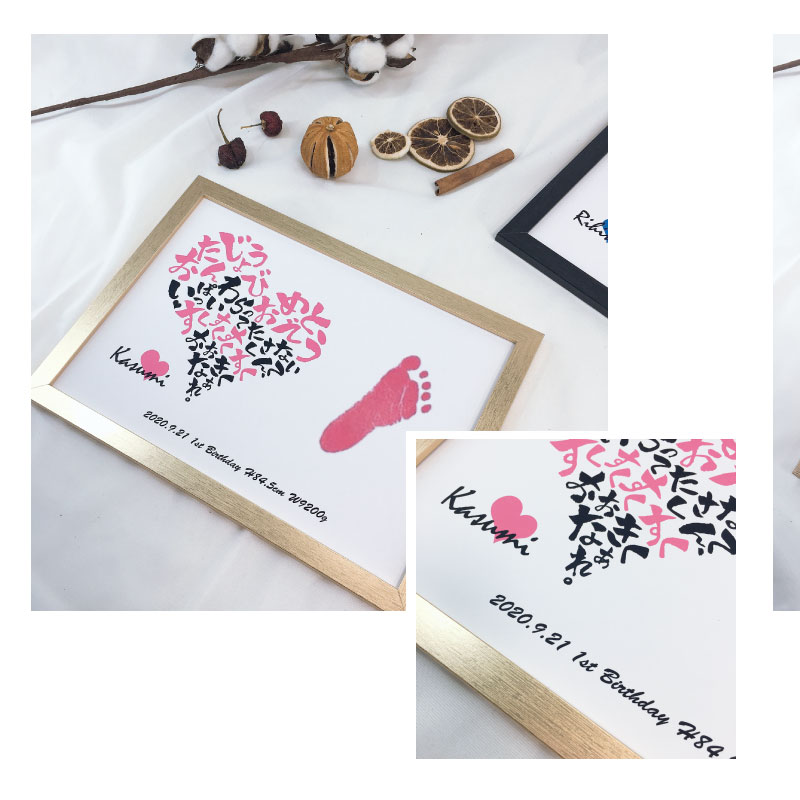 ポスターとインク、フレームの同時購入で届いてすぐに手形足形をとることができます。