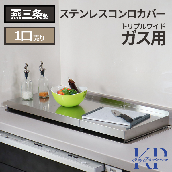 トリプルワイドガスコンロに対応したステンレス製のコンロカバーになります。
