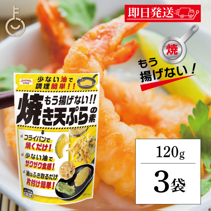 在庫処分 昭和産業 もう揚げない 焼き天ぷらの素 120g 3個 天ぷら 天ぷらの素 素 天ぷら粉 てんぷら こな ザクザク食感 ポイント消化