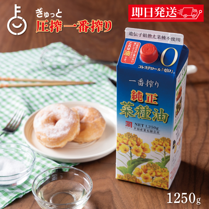平田産業 一番搾り純正菜種 1250g 1本 カネゲン 純正菜種油 一番搾り なたね油 コレステロールゼロ 紙パック カネ源 ポイント消化 爆買