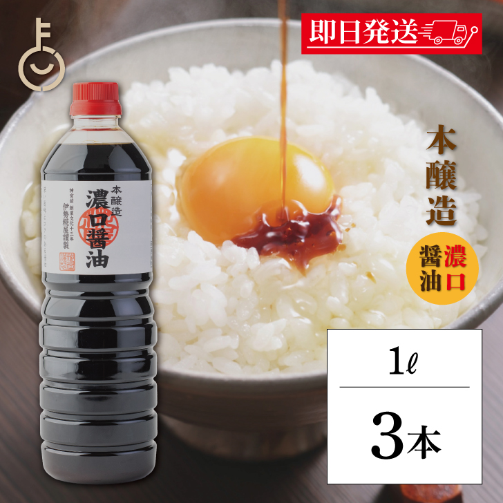 糀屋 本醸造 濃口醤油 1L 3本 熟成醤油 濃口 醤油 溜まり 木桶仕込み 伝統製法 まとめ買い こうじや 定番 三重県 まろやか 深い旨味 伊勢 料理 家庭 爆買