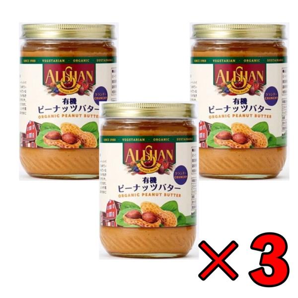 アリサン ピーナッツバター クランチ 454g 3個 有機ピーナッツバター 有機JAS ピーナッツバタークランチ ザクザク 保存料 無添加 不使用 オーガニック