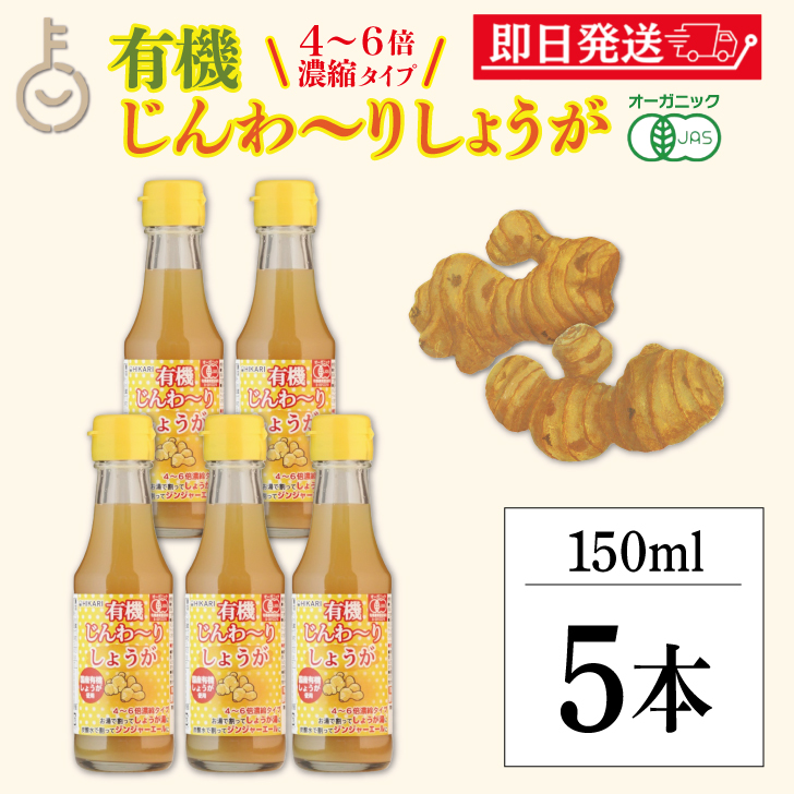ヒカリ 有機じんわーりしょうが 150ml 5本 (4-6倍濃縮タイプ) 光食品 有機JAS 有機 オーガニック まとめ買い ランキング ポイント消化 爆買