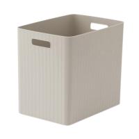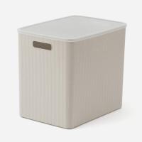BOXのライトグレー色は、汚れが目立ちにくく、リビングなどに馴染む色合いが魅力。ストライプ柄なので、無機質になりがちな収納空間に、木々のようなナチュラルな印象を与えます。