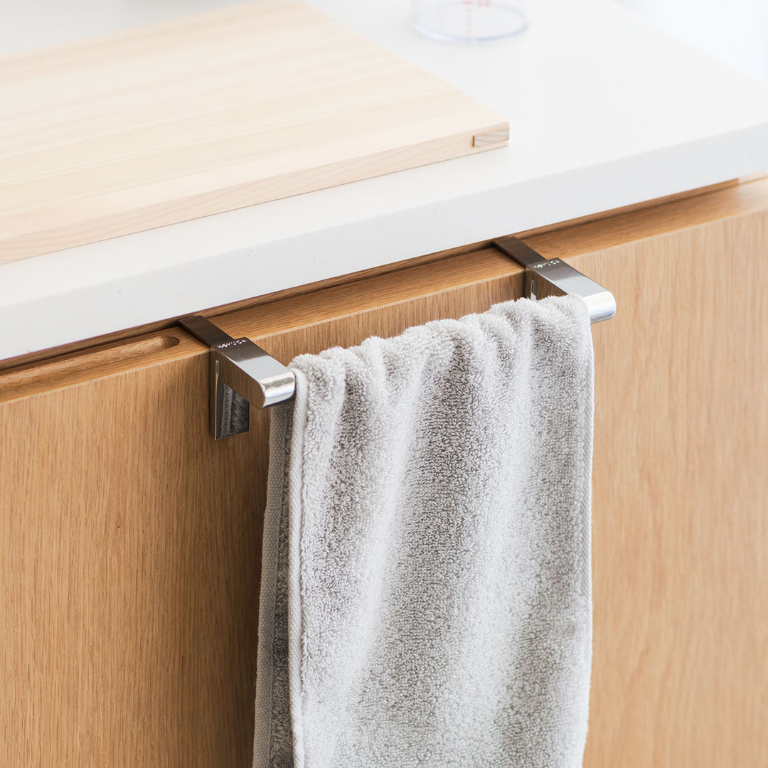 シンプルモダンを追求したタオル掛け。簡単にキッチンシンク下の扉へ取り付けられるタオル干しです。扉の厚みに合わせて、ガタつくことなくしっかりと固定でき、その場でさっと手を拭くことができますので、本当に便利です。高級感のあるシンプルなデザインが魅力の、ケユカオリジナルの逸品。まるで、初めからキッチンに付いていたかのように、どんなキッチンにもしっくりとなじむタオルハンガーです。タオルをかける部分が30cmのタイプもあります。