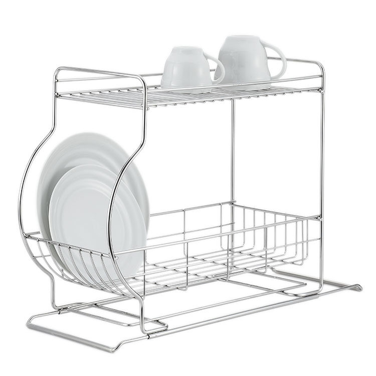 サイドから見ると、船のようなフォルムになっているので、まるい器の曲線がぴったり収まる2段タイプの水切りカゴです。脚部が伸縮しますので、直接シンクの上に渡したり、別売りの「ドレイン トレー」と組み合わせてシンク脇に置けば、傾斜した水切りトレーが洗い物の水を自然にシンクに流してくれるので、大変便利です。下段には皿や椀、上段にはグラスなど、たくさんの洗い物をのせることができます。