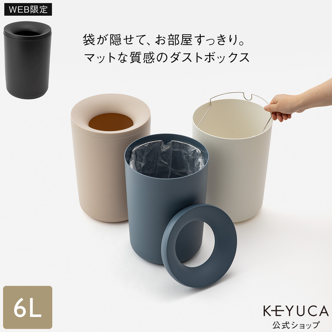 ゴミ箱 おしゃれ 袋が見えない インテリア 丸型 トラッシュカン 洗面所 リビング | KEYUCA WEB限定 pist ダストボックス 6L 袋留めセット ケユカ