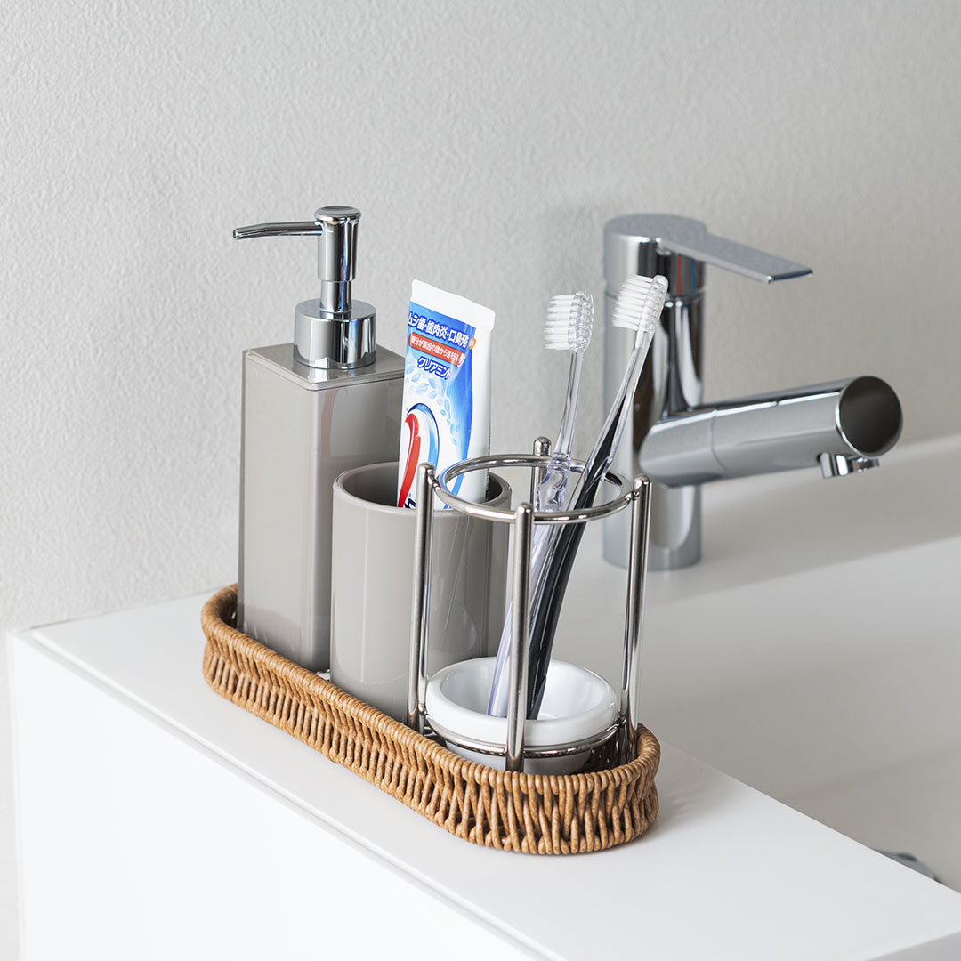 水や汚れに強く、毎日のお手入れも簡単なPP(ポリプロピレン)ラタン。樹脂製ながら、まるで本物のラタンのようなあたたかみのある風合いで、キッチンやリビング、ランドリーなど様々な空間に馴染みます。小物入れやカトラリーケース、醤油差し置きなどのテーブルウェアとしてや、ボトル・アメニティラックなどの洗面周り整頓用アイテムとしてなど、様々な用途で使うことができるマルチトレイです。材質はポリプロピレン樹脂でできた人工ラタンのため、水洗いが可能です。※水洗い後はしっかりと拭き取り、水気を切ってからご使用ください。食器洗浄機使用不可×※こちらの商品は、一部のKEYUCA店舗のみでのお取り扱いとなっております。お近くの店舗での在庫状況につきましては、事前に各店舗へお問い合わせいただきますようお願いいたします。サイズ:W26×D9×H3cm材質:ポリプロピレン/スチール生産国:中国検索タグ:ポイント利用 expoint01