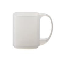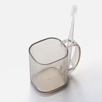 ハブラシを立てられる取手がついた樹脂コップです。
