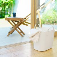 スペースを無駄にしない四角い形、ポリエチレン製で柔らかく耐久性に優れた収納ボックスです。