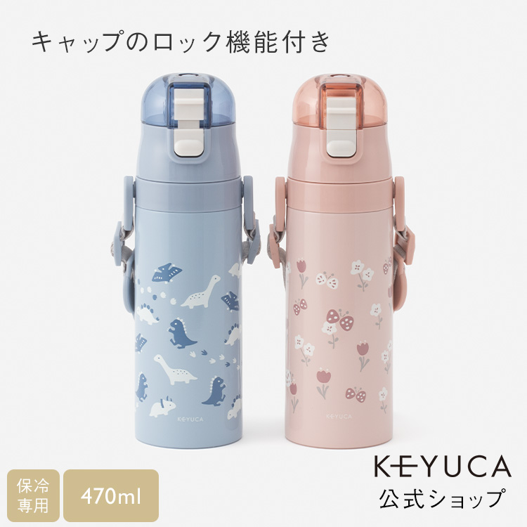 水筒 子供用 男子 女子 かわいい キッズ 軽い 持ち運び ショルダーベルト 幼稚園 小学生| KEYUCA キッズ 軽量ロック付保冷ボトル 470ml ケユカ