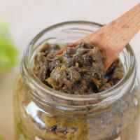 【原材料】ふきのとう、味噌、砂糖、ぶどう糖果糖液糖、醗酵調味料、食用植物油脂、いりこだし/調味料(アミノ酸等)、酸味料、酸化防腐剤(V.E)、(原材料の一部に大豆を含む)