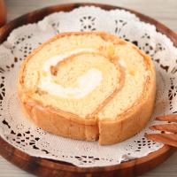 甘さ控えめのシューロールケーキに仕上げました。
