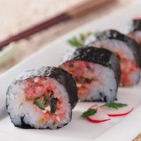 明太子と刻んだ高菜をたっぷり使い、特製ドレッシングで合わせました。辛味の明太子と高菜の食感がおにぎりにとてもよく合い、一番人気です。ご飯や寿司の具にもおすすめです。