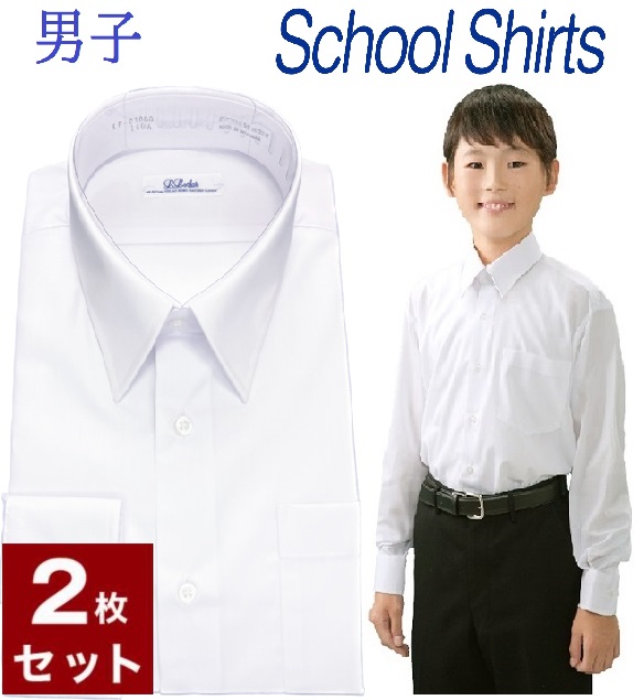 【送料無料】スクールシャツ 男子 長袖 白2枚セット 形態安定 ノーアイロン メンズ ワイシャツ ホワイト 蛍光白 学生服 カッターシャツ 学生 シャツ 送料無料