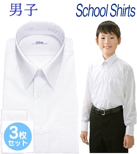 【送料無料】スクールシャツ 男子 長袖 白3枚セット 形態安定 ノーアイロン メンズ ワイシャツ ホワイト 蛍光白 学生服 カッターシャツ 学生 シャツ 送料無料