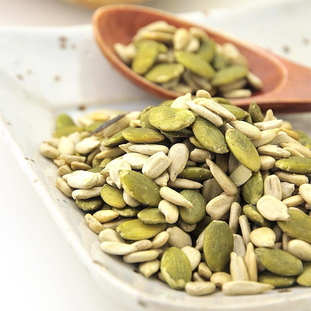 ●かぼちゃの種にはリノレン酸が豊富。カルシウムやミネラル等の必須ミネラルも手軽に摂取できます。 ひまわりの種には、カルシウム、鉄分、ビタミン、リノール酸、亜鉛などが含まれていて、ハードな毎日を送られている方をサポートします。アメリカやヨーロッパでは健康食品として日頃から食されています。