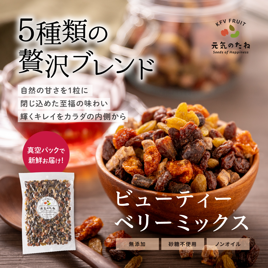 | 原産地 | レーズン(アメリカ)、グリーンレーズン(イラン)、インカベリー(ペルー)、デーツ(イラン)、いちじく(トルコ) |