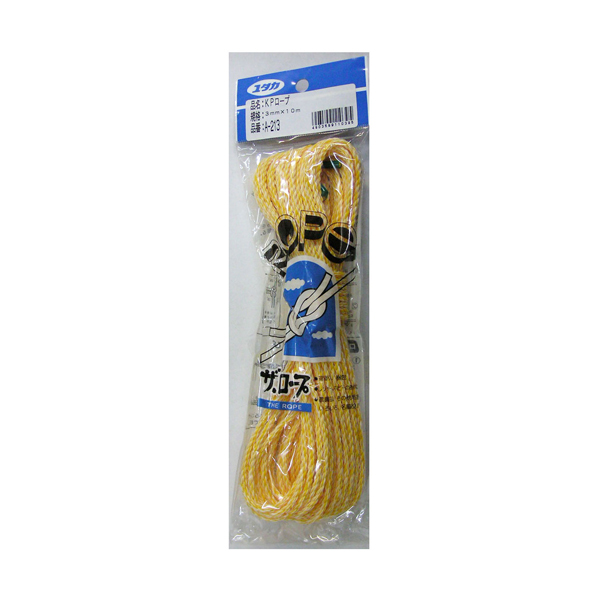 【メーカー】●(株)ユタカメイク【特長】●細手ロープをカットしたコンパクトな小袋入りタイプ。【仕様】●サイズ:線径3×長さ10m●質量:60g●先端加工:テープ止め●パッケージサイズ:縦270×横80×奥行30mm●製造国:日本【JANコード】4903599110395