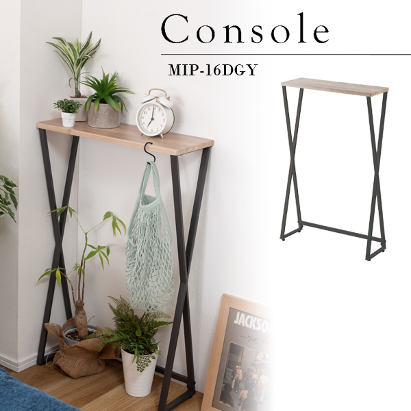 コンソール テーブル 机 スリム 省スペース コンパクト 玄関 木目調 スチール脚 サイドテーブル リビング シンプル ミニテーブル 黒 おしゃれ ハイタイプ