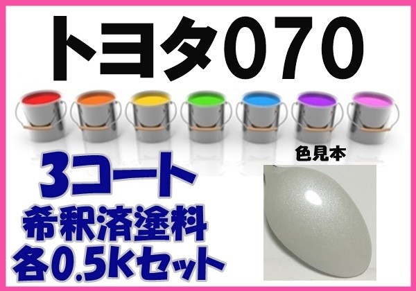 トヨタ070 塗料 3コート ホワイトパールクリスタルシャイン 希釈済 カラーナンバー カラーコード 070