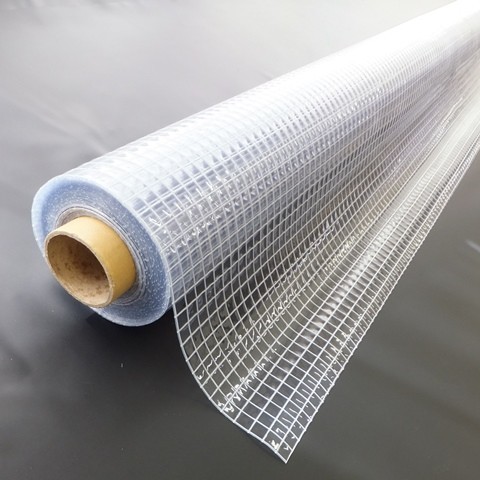 各種養生、埃除け、テーブルクロス、シートに最適な透明の糸入り透明ビニールのロール品です。
