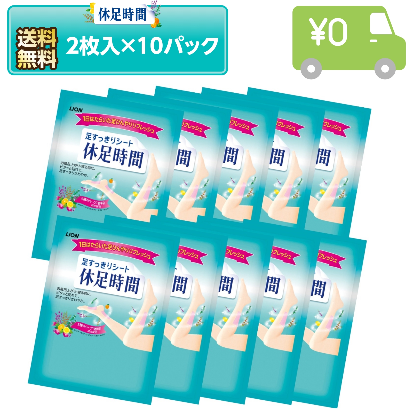 【2枚入×10袋セット】ライオン 足すっきりシート 休足時間 ノベルティ用 非売品 ハーブ香料配合 クールシート 携帯便利 旅行 プレゼント