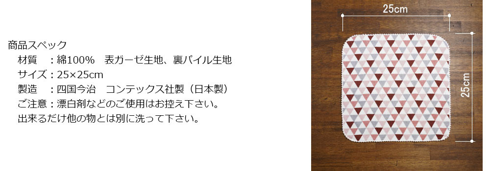 表はフワフワのガーゼ生地、裏はしっかり吸収の細目のパイル生地