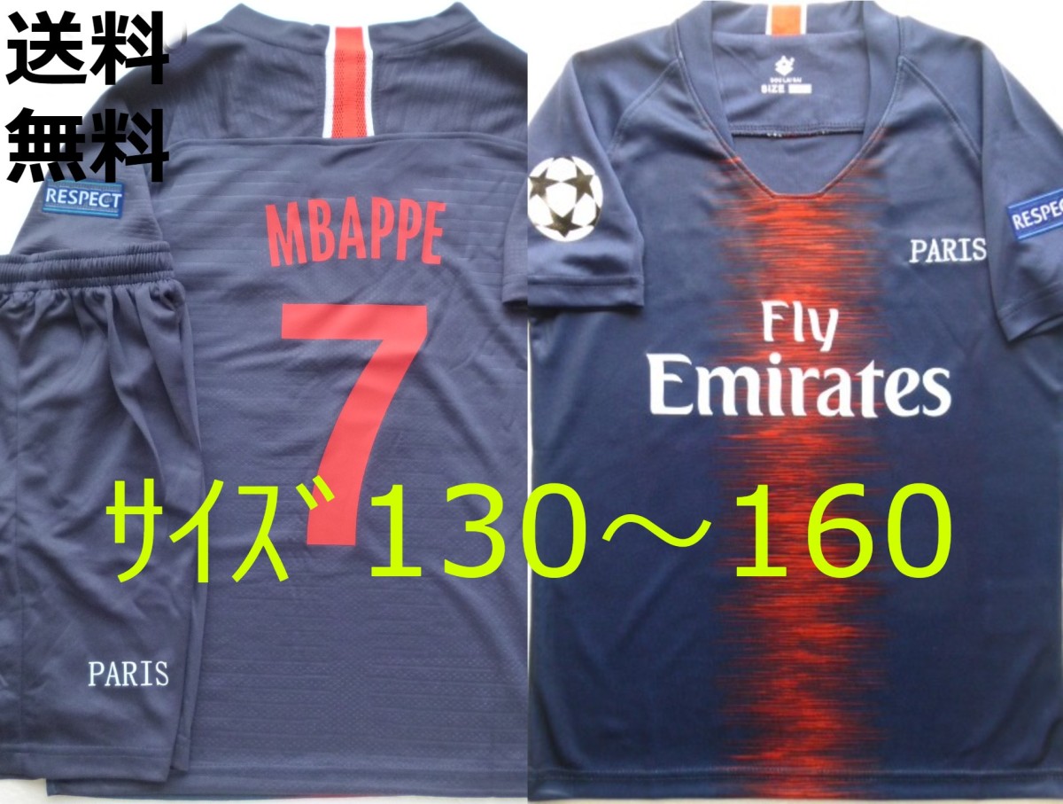 エムバペ ユニフォーム 18/19 home 紺 サッカー 130〜160サイズ 子供用 パリ(フランスの都市) チャンピオンズリーグ