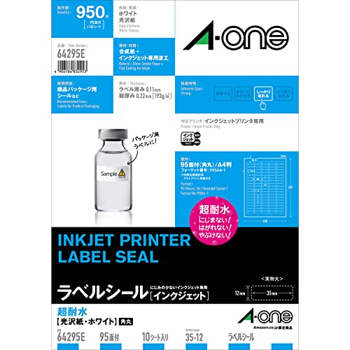 エーワン ラベルシール インクジェット 超耐水 光沢紙 95面 10シート 64295E