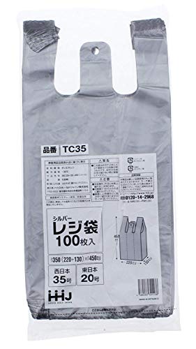 ハウスホールドジャパン シルバー レジ袋 100枚入 350(220+130)×450mm 厚さ0.02mm 西日本 35号 東日本 20号 T