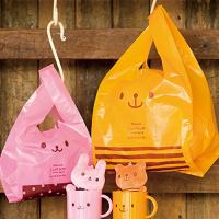 [ヘッズ] 手提げ袋 レジ袋 30×55×15cm くま オレンジ L 100枚 イエロー フック穴付 CDB-L