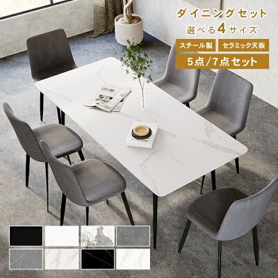 10%OFFクーポン★レビュー特典・ダイニングテーブル セラミック天板 食卓テーブル 幅120-180cm 石目調 大理石風 5点/7点セット ダイニングテーブルセット