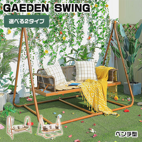 ブランコ 庭 屋外 2人乗り 庭遊具 ラタン調 3人掛け 2タイプ クッション付き スタンド式 自立式 子供 大人 スイングベンチ