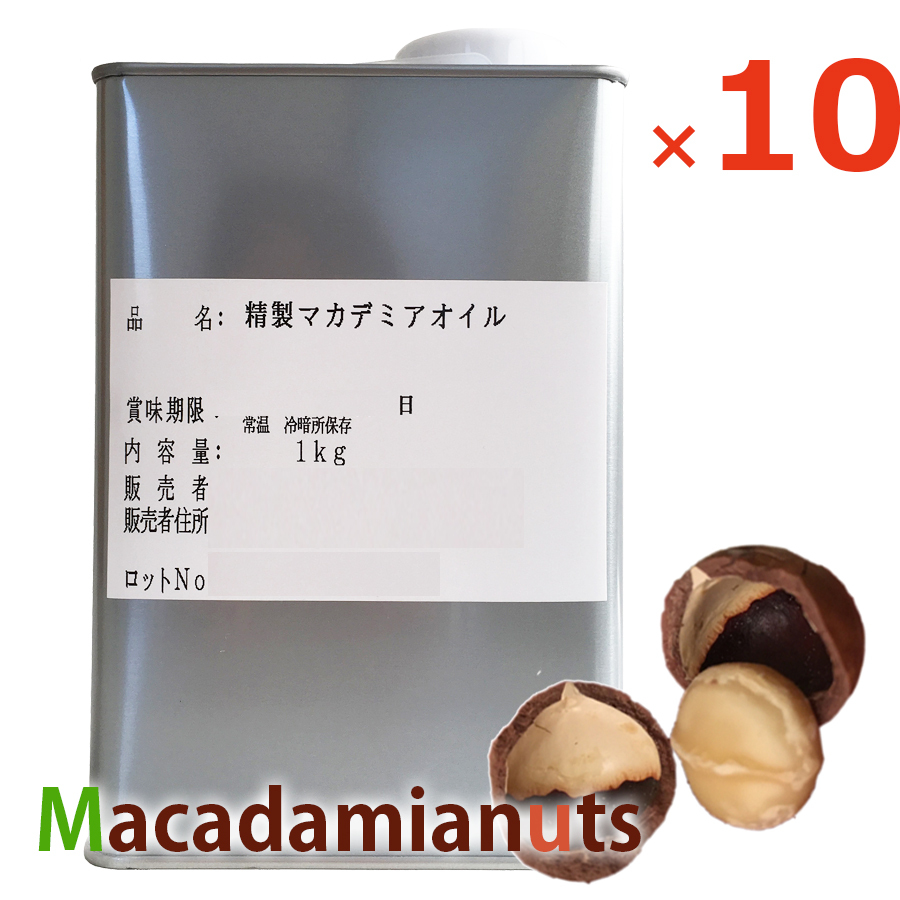 大容量1kg×10本 マカダミアナッツオイル ケニア産100% マカデミアオイル 無味 無臭 ピュアオイル 食用油 ドレッシング 製菓 パン 美容 マッサージオイル 業務用