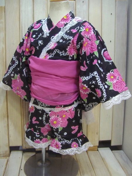 ドンキージョシー Donkey Jossy キラキラ花とハート柄のの簡単浴衣 ミニ丈 子供服 セール キャリー春夏