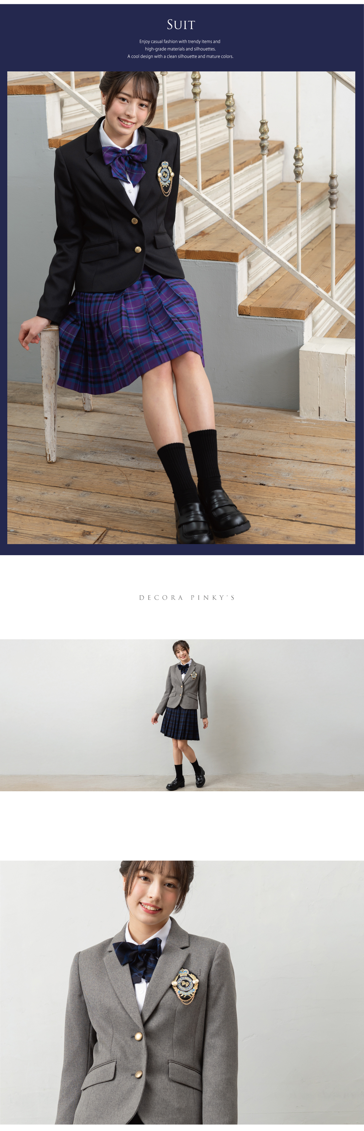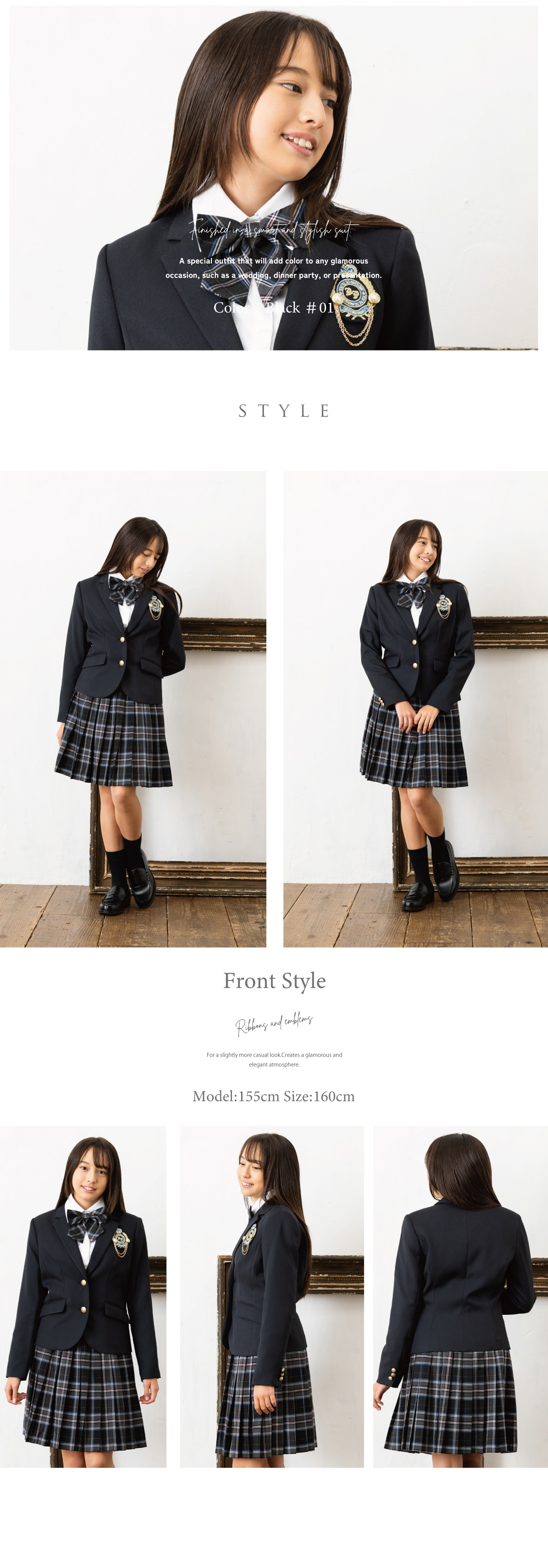 卒業式 小学校 女子 スーツ 小学生 女の子 140 150 160 165 170 大きいサイズ ジャケット ブラウス スカート リボン エンブレム フォーマル キッズ 子供スーツ 卒服 ジュニアスーツ 発表会 冠婚葬祭 お受験 DECORA PINKY'S