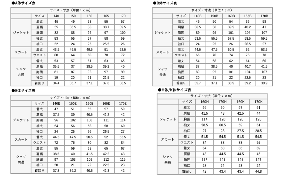 ■サイズ種類■ 通常サイズ(A体)→140/150/160/165/170