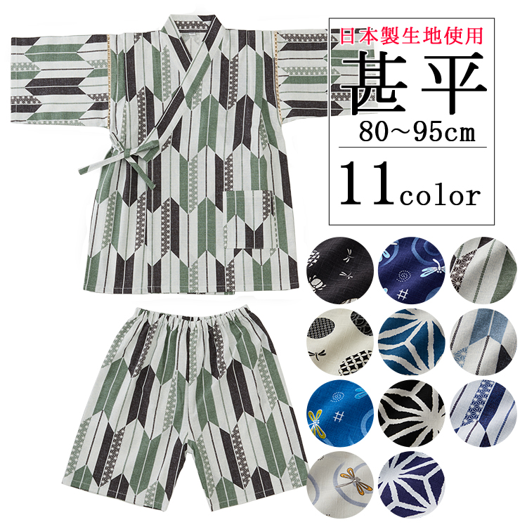 甚平 男の子 半袖 ベビー 赤ちゃん 男児 上下セット 日本製 コットン 綿100% 子供 キッズ 80 90 95 じんべい じんべえ 花火大会 夕涼み 和柄 和服 お祝い プレゼント ネイビー ベージュ ホワイト ブラック グリーン グレー