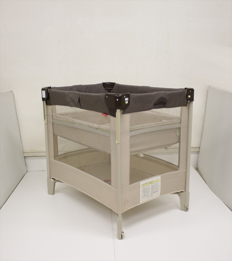 送料無料 ココネルエアー ココアBR たたんで運べるベビーベッド 収納袋欠品 新生児OK クリーニング済み