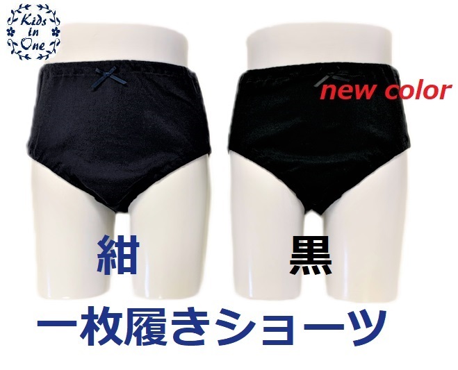 一枚履き 紺・黒ショーツ 女児 綿100%ブルマ 日本製 白マチも日本製 110〜170cm 大好評累計28,000枚突破 涼しい 1枚ばき あせも防止 いちまいばき メ-ル便5枚可