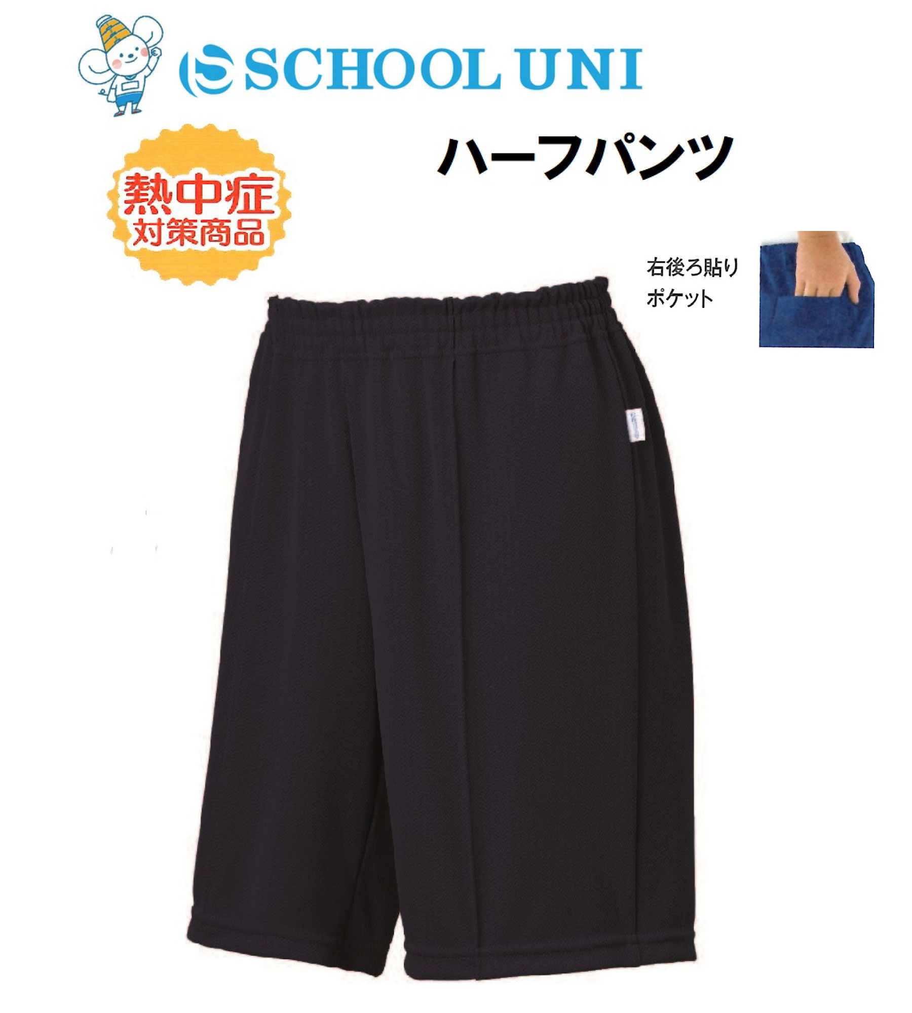 ハーフパンツ 体操着 紺 後ろポケット スクールユニ 吸水速乾 120/130/140/150/S/M/L 子供 体操服 運動会 入園入学 短パン ネイビー メール便1通に1枚 FM9000M