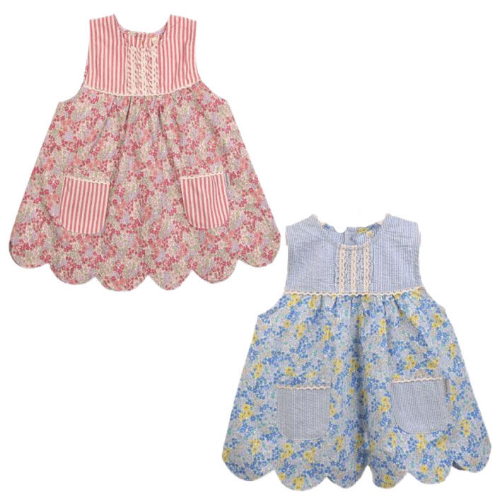 子供用エプロン 100cm用 小花柄 キッズエプロン ピンク・ブルー 家庭科 調理実習 お料理 お手伝い