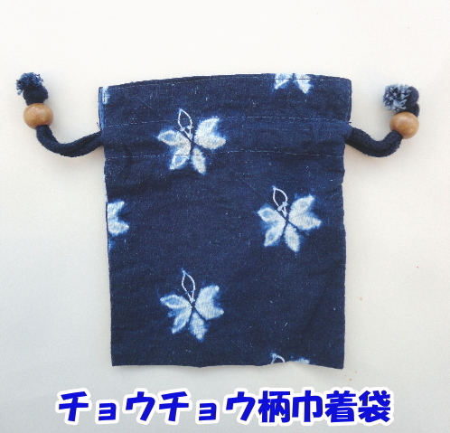 藍染め巾着袋 長方形タイプ・チョウチョ柄です。