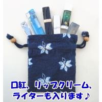 藍染め巾着袋はちょっとした小物を入れるのに便利ですよ。