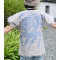 チャイナシャツ 女性用 グレー ユニークな柄のコットンシャツ 中国のカラフルシャツ ゆったりシャツ 一点もの! レアなシャツ、しかもリーズナブル!